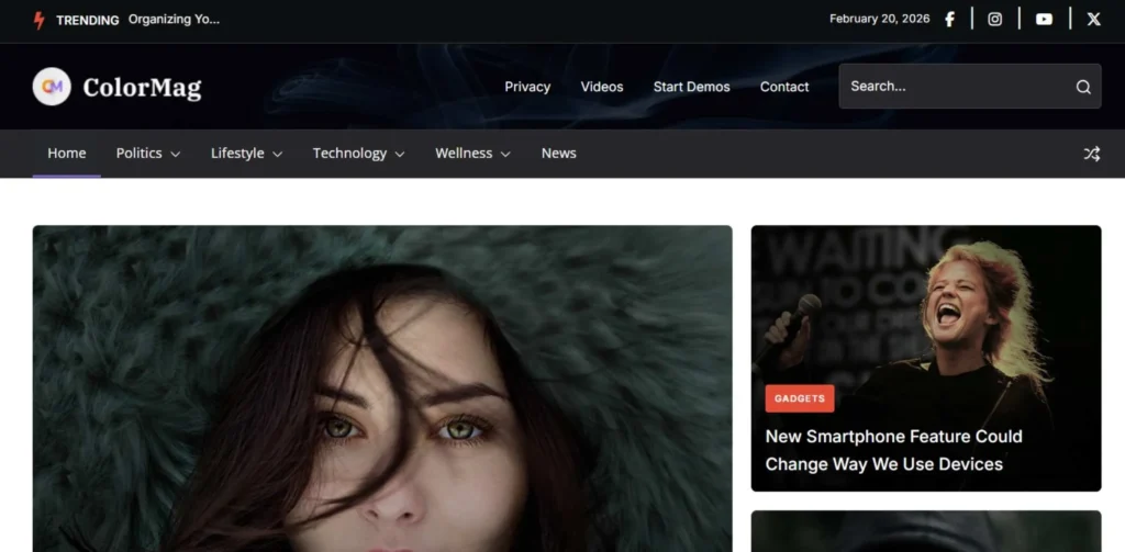 ColorMag is one of the best free WordPress themes for news websites. It is perfect for beginners who have a low budget. This theme is designed in a magazine style, where you can display multiple categories like politics, sports, and tech on the homepage. It allows you to assign different colours to each category, making navigation easy for users.