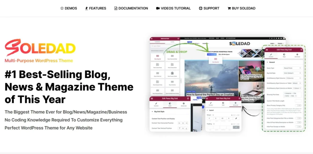Soledad is one of the most flexible and powerful news themes available today. It is known for its massive library of 6000+ demos, which means you can create any type of website design. Whether you want a tech blog, news portal, or magazine site, Soledad can do everything. It also includes AI tools like content creator plugins, which help in faster publishing.